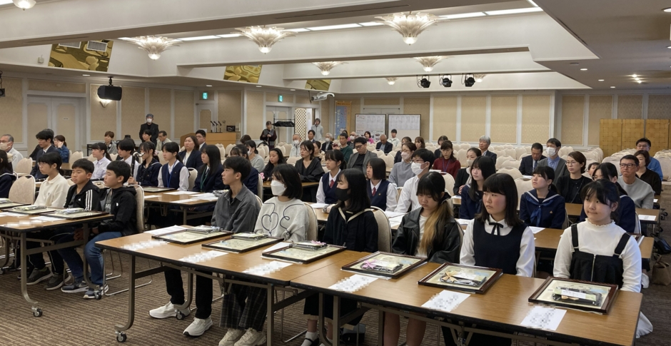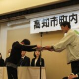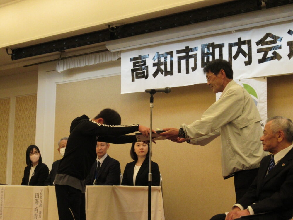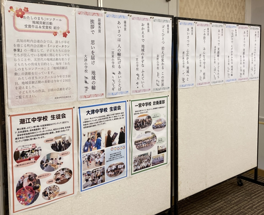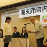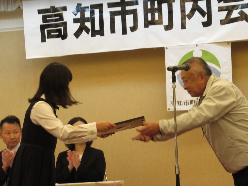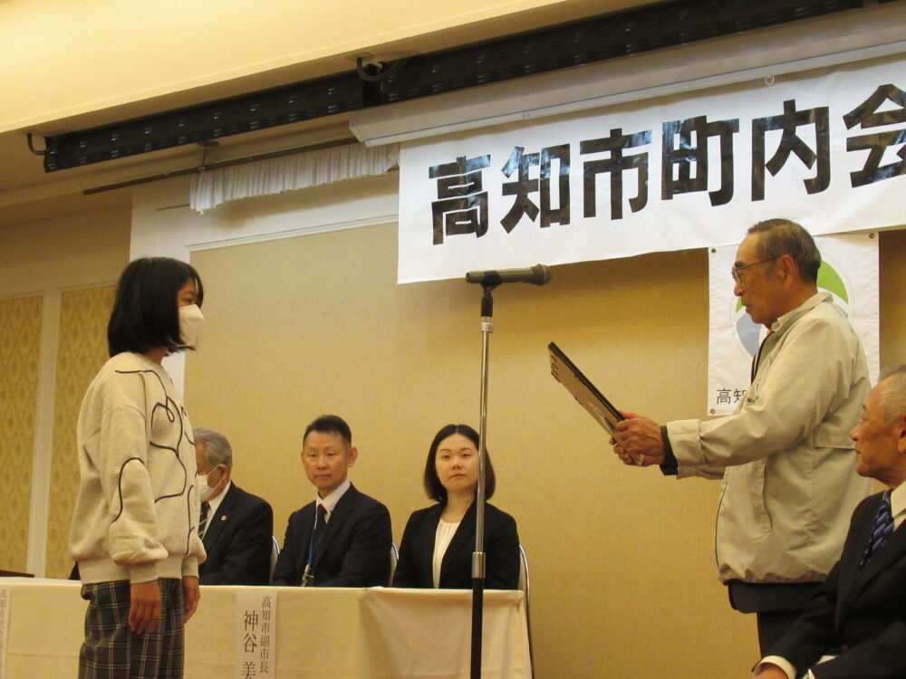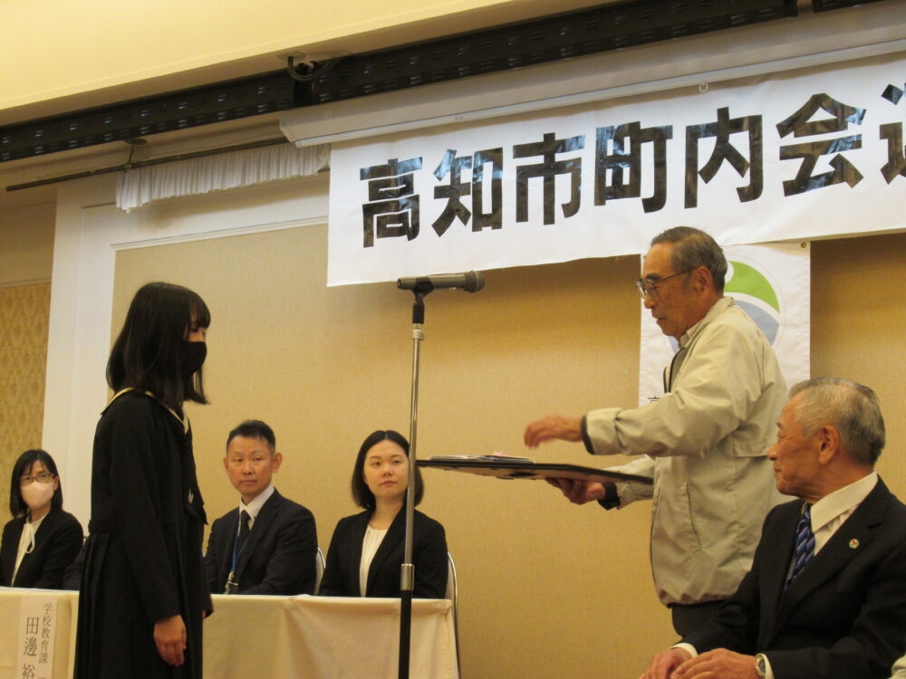 令和7年度 第3回「わたしのまち」コンクールを開催しました。今年度は作文⇒標語にリニューアルし、新しい視点から地域を発見することが出来ました。「標語コンクール」には高知市内10校585名の応募をいただき、その中から厳選なる選考の結果「最優秀賞1名」「優秀賞9名」のみなさんが受賞されました。おめでとうございます。表彰式は11月9日(日)高知会館にて行い、当日は最優秀賞含む9名のみなさんが少し緊張した面持ちでご来場され、神谷副市長ご臨席のもと、当連合会役員理事より賞状と記念品が授与されました。受賞作品については令和7年12月1日(月)~12月26日(金)まで高知市役所 本庁舎1階 北側 ファミリーマート横にて作品の展示をさせていただきますので、素晴らしい作品を是非ご覧ください。