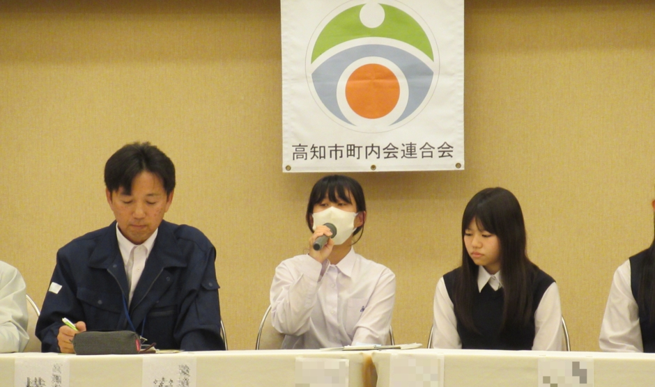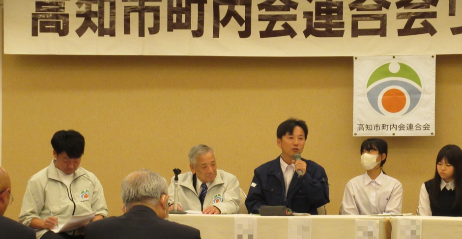 高知市町内会連合会リーダー研修会【第2部】は「地域の課題について」をテーマにパネルディスカッションを行いました。コーディネーターは当連合会青壮年部会が務め、パネラーは連合会副会長、高知市環境業務課、城西中学校生徒会、潮江中学校生徒会、潮江中学校の校長先生にもお願いしました。前半は、地域の課題について「後継者不足問題」「不燃物の管理」「ごみの不法投棄」「地域との交流が少ない」などの意見が出ました。後半は、解決策・連携の方向性として中学生が今、出来ることは「イベント等に参加して地域と関わっていくこと」「地域と関わるきっかけを作っていくことが大事」「町内会の運営を見ていく中で、高齢者の方々が多く自分たちの親世代がいなくて、私たち中学生が活動をしているので、私たちが親世代に働きかけていかなければならないと思った」など貴重な意見をいただきました。また、学校側からみた地域とのつながりについて校長先生より「『次世代を育てる』ことが大切であること。活動の中での役割を与え、待ちの姿勢(出来るまで待つこと)、任せる姿勢、そして感謝を伝えるということが達成感につながり、今後の地域活動へ関わるきっかけになる」とのお話を伺いました。高知市も高齢化が進み、後継者不足で困っている町内会(自治会)がたくさんあります。しかしながら、若い世代や学校も地域活動に協力し、真摯に取り組まれていることがわかり希望の光がみえました。今後ともよろしくお願いいたします。