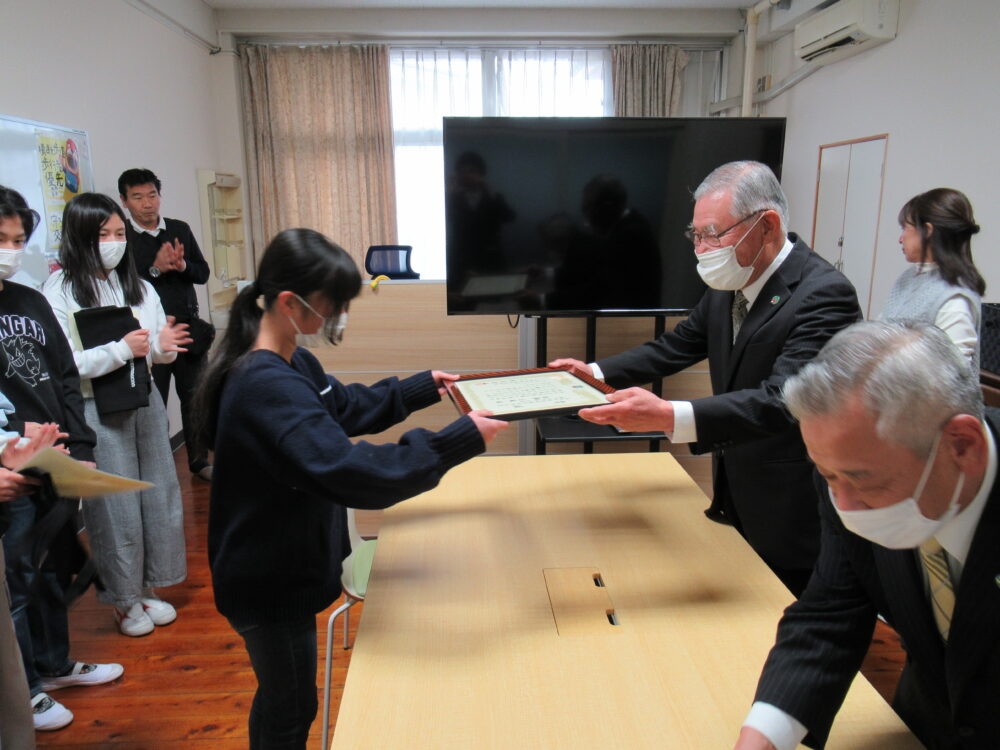 高知市町内会連合会では、次世代を担う子どもたちに少しでも地域のことに関心を持ってもらおうと、高知市の小学校5・6年生に「わたしのまち」をテーマとした作文コンクールを開催いたしました。第1回目ということもあり応募総数53人と少ないながらも、それぞれの地域の魅力や活動、地域の人たちとのつながり、また自分たちはこれからこんなことをしていきたい!など、子どもたちの思いがつまった素晴らしい作文がたくさんありました。審査は当連合会役員会において行われ最優秀賞1名・優秀賞2名・入賞6名・会長賞1名が決定しました。最優秀賞には土佐山学舎6年生門田実侑さんの「いつまでも続く土佐山」が選ばれ、少子高齢化で地区の行事が開催出来なくなっていることを心配し、総合授業を通して地区外の人に土佐山の魅力を伝え、興味を持ってもらう。いつまでも続く土佐山にしたい。と力強く書いてくれました。表彰式は長尾会長と横山副会長が3月6日・7日の2日間、各小学校にて行いました。第1回参加校は、五台山小学校・土佐山学舎・浦戸小学校・横内小学校・鴨田小学校でした。次回もたくさんの参加をよろしくお願いします。
